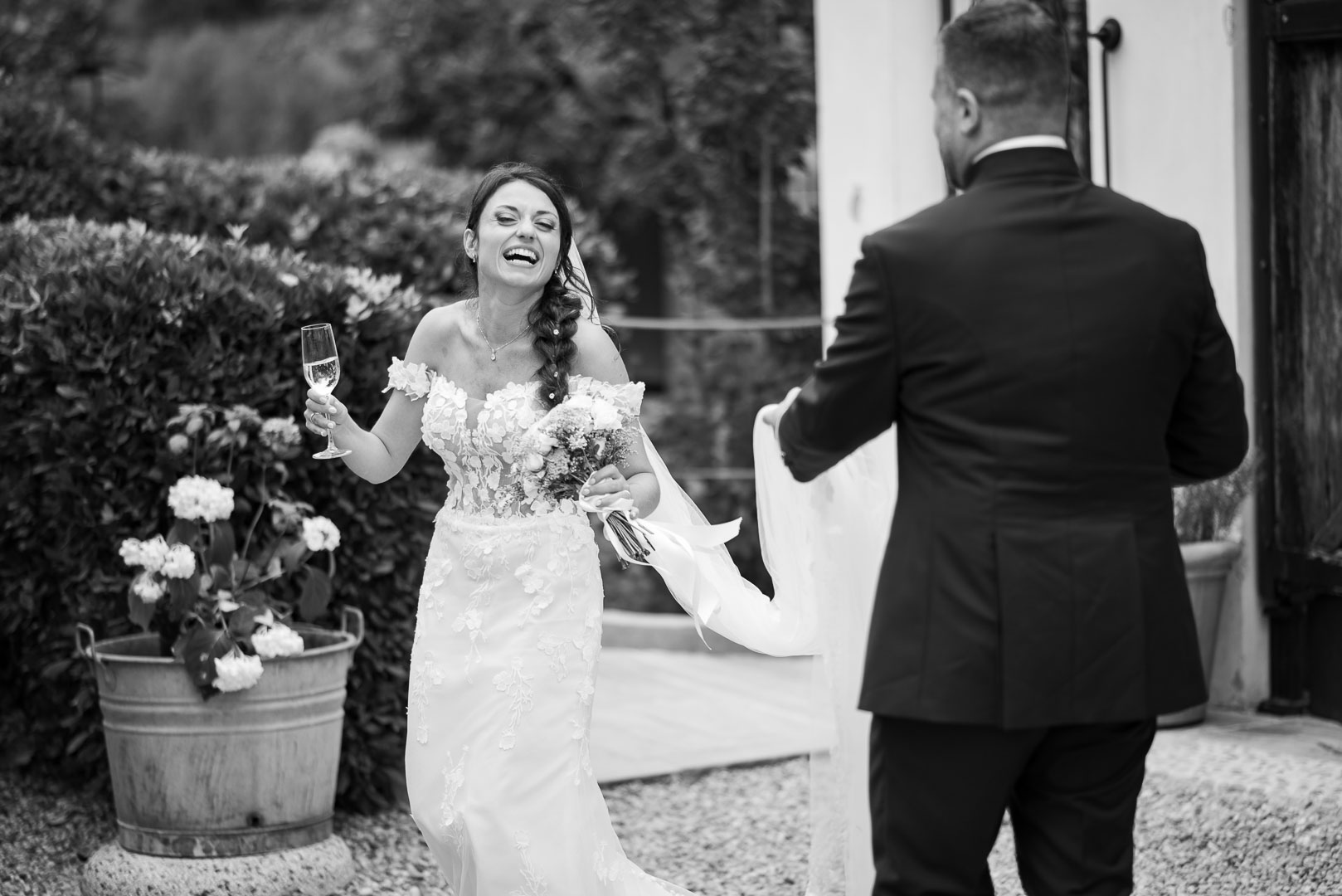 Gabriella e Marco si sono sposati a Genova e hanno festeggiato con amici e famiglia da A Modo Mio, una location perfetta per un ricevimento caloroso e pieno di vita.