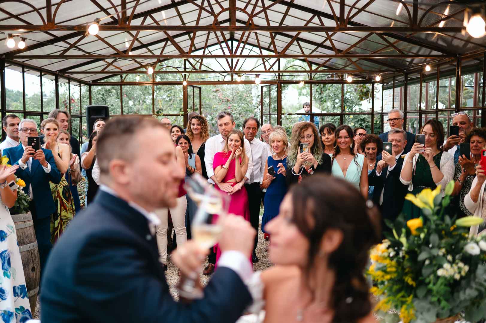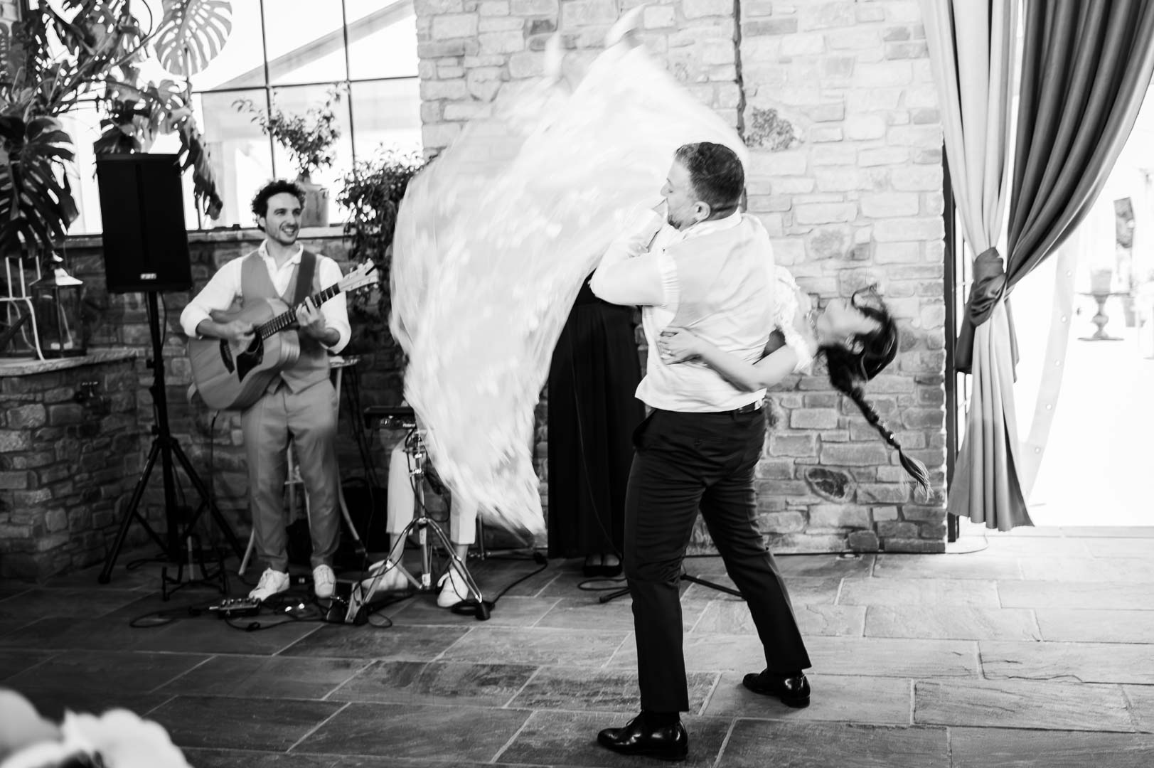 Gli allestimenti floreali di Espressioni Floreali di Pronzato hanno aggiunto eleganza e naturalezza agli spazi, mentre amici e sposi hanno animato la festa ballando rock acrobatico, tra risate e applausi, regalando energia e divertimento a tutti i presenti.